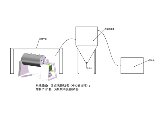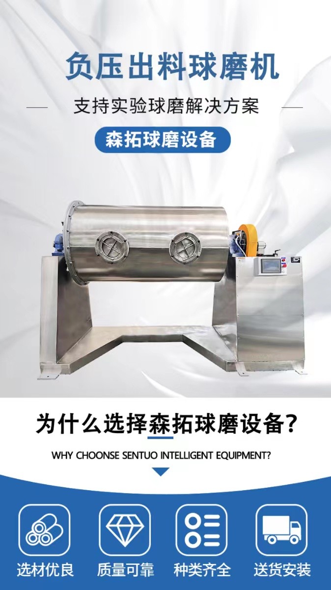 負壓出料球磨機是有一個水平放置,繞水平軸旋轉的中控筒體,筒體內裝有粉磨介質和被物料。當筒體旋轉時介質和物料被提升,到一個高度后受重力作用下落,介質運動使物料受到擠壓,摩擦,沖擊,磨剝,剪切等作用而粉碎。該機主要解決了傳統干法球磨機進出料難,頻繁拆卸堵頭和出料裝置的問題。該機采用定制型旋轉接頭,從中心空軸進行進料和出料,配套負壓除塵進行連續出料操作。根據不同工藝需求,筒體內壁可選聚氨酯,尼龍,氧化鋁磚,不銹鋼,錳鋼等材質,并可根據用戶要求配變頻調試結構。