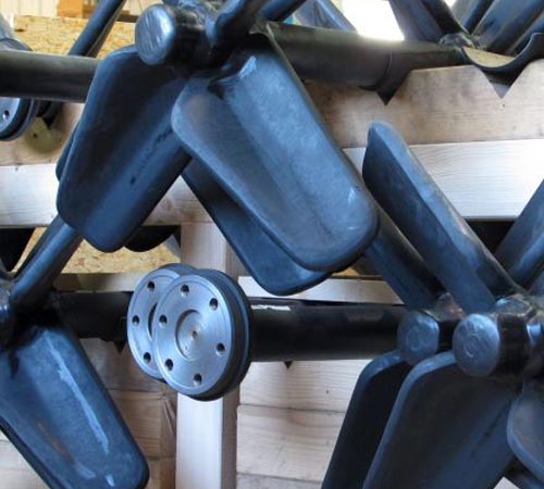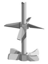 某些高效軸向流葉輪非常適合固液懸浮操作,這些葉輪都有變葉寬和變傾角的特點。典型的固液攪拌葉輪如下圖所示。