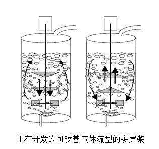 三相體系常常涉及多個攪拌器的使用,分別實現氣液分散和固液懸浮。