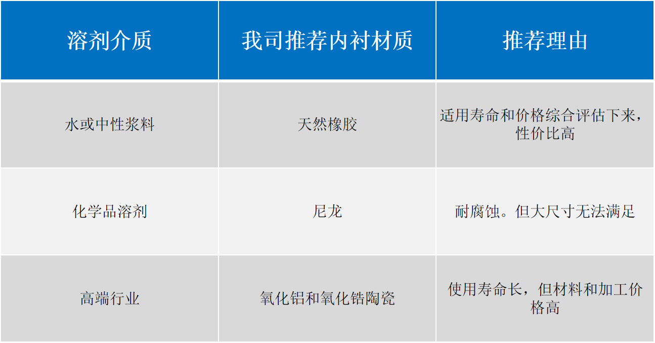 不同工藝不同內(nèi)襯推薦