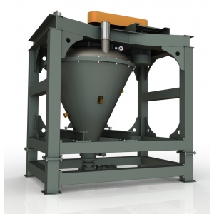 混合腔體為錐形桶體結構,并配有中心轉軸,轉軸上裝有沿著桶壁轉動的刀片,通過轉軸刀片高速運轉產生強離心力將物料推向混合腔體內壁,同時混料錐體內壁及轉軸刀片會形成向上旋轉推力,使粉體沿錐體內壁向上運動,將粉料由底部帶至混合腔頂部。當產品到達頂部時,再由弧形機蓋引導到混合機的中心,并回落到混合腔的底部,重新開始新一輪的混合過程,如此循環往復;物料在錐桶內提升及回落過程中,會受到開刃刀片、混料桿的強力打散及剪切,從而達到快速均勻分散混合的效果。
